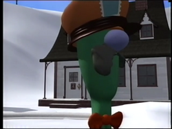 The Toy That Saved Christmas will continue after this short break. Bob the Tomato as Winter Larry the Cucumber as Winter Junior Asparagus as Winter Stocking cap. Larry the Cucumber as Winter.